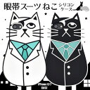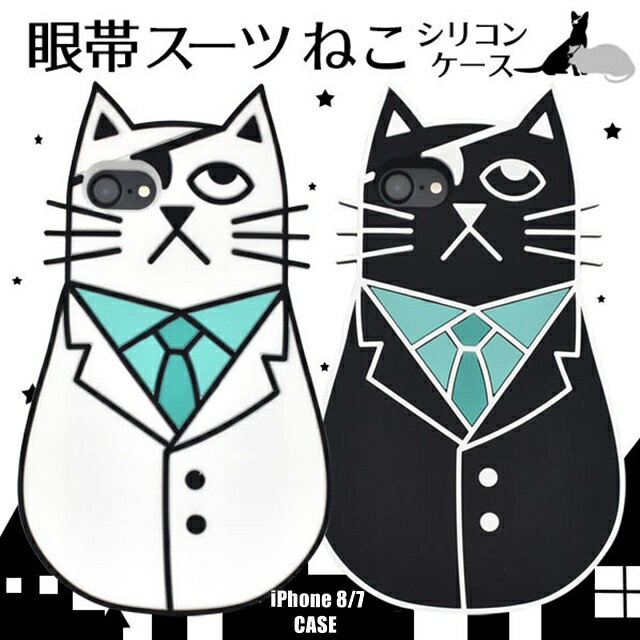 メール便送料無料 iPhone8 ケース iphone7ケース 猫 ケース アイフォンケース シリコン アイフォンケース かわいい シリコンラバー 白猫 黒猫 しろねこ くろねこ スマホケース スマートフォンケース 眼帯 スーツ デザイン