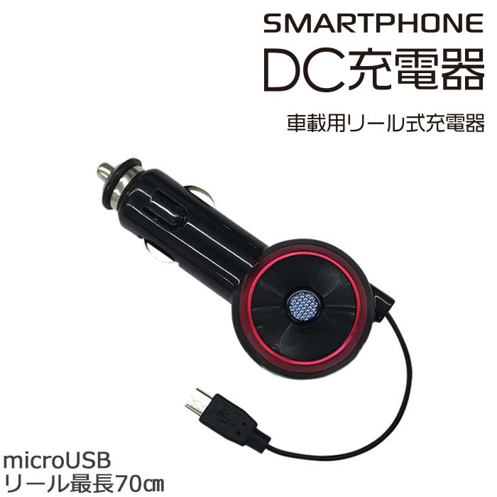 車載用充電器 リール式 シガーソケット おすすめ Android microUSBコネクター スマホ Wi-Fiルーター DC 充電器 車 車載 リール 伸縮 micro USB Wi-Fi ケーブル インジケーターランプ 人気 便利 DKJ-R1 BK