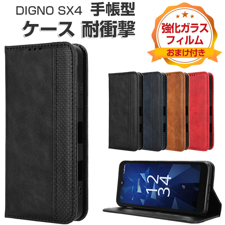 KYOCERA Digno SX4 ケース 耐衝撃 カバー 手帳型 財布型 TPU&PUレザー おしゃれ 汚れ防止 スタンド機能 カード収納 人気 便利性の高い 京セラ ディグノ エスエックスフォー SX4 KC-S305 / SX4 Wi-Fi KC-S205 ケース 手帳型カバー CASE 強化ガラスフィルム おまけ付き