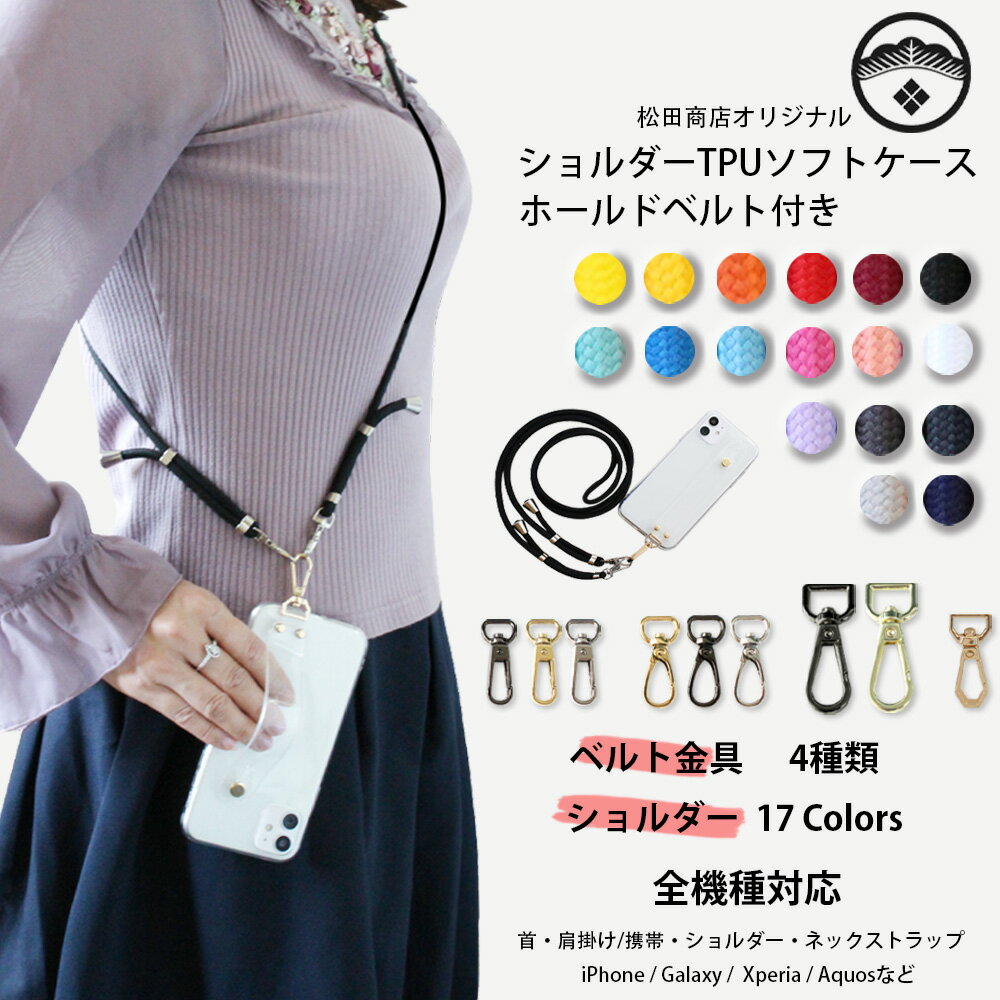 店内全商品に使えるクーポンを配布中★★★★★ショップのレビュー★★★★★商品名スマホ ホールドベルト ショルダー 肩掛け スマホケース素材・素材 :TPU(熱可塑性ポリウレタン)・カラー:透明・厚さ :約1mm・紐 : 無地 ナイロン 17色・固定金具 : 鉄金具種類a.ブラック Blackb.ゴールド Goldc.シルバー Silver1 約42mm(スタンダード)2 約42mm(まる系)3 約49mm(大型)4 約38mm(角小型)カラー1.ブラック Black2.ダークグレー Dark Gray3.グレー Gray4.ホワイト White5.ピンク Pink6.ホットピンク Hot Pink7.パープル Purple8.シアン Cyan9.ライトブルー Light Blue10.ブルー Blue11.ダークブルー Dark Blue12.ネイビー Navy13.イエロー Yellow14.ブライトイエロー Bright Yellow15.コーラルピンク Coral Pink16.レッド Red17.ワイン Wine特徴1.シンプルなデザイン・スマートフォン本体のデザインを損なわず、美しさが際立つスーパークリスタルクリアタイプ。2.自分のスタイルに・自分のスタイルに合わせ、アクセサリーや鍵などの小物を取り付けることが可能。3.TPU素材・デバイスの完全な保護を提供する為に、シリコン素材より強く耐久性に優れ、プラスチック素材よりしなやかな弾力性を持つTPU(熱可塑性ポリウレタン)素材を使用しています。4.装着簡単・柔軟性が高く再現性に優れるため、着脱しやすく、ぴったり設計なので手にしっかりフィットするグリップ感を持たらしています。5.つけたまま充電OK・装着したまま充電が可能、ワイヤレス充電も可能。6.操作簡単ジャック部分、電源・音量ボタン、カメラ周りを守りつつも存在感をゼロに、その為各種ボタン及びスピーカー、カメラ周囲及び充電等すべてケースをつけたままで操作が可能な設計です。7.ほぼ全面保護磨耗に耐え、滑り止め防塵、分裂防止などの全面の保護を提供します。大切なスマートフォンが手から滑り落ちる心配はありません。もしもの落下の際には衝撃を吸収、スマートフォンを守ります。備考●画像はイメージです。あらかじめご了承ください。●モニターの色と実際の色が異なることがございます。あらかじめご了承ください。●当商品にスマートフォン本体は付属しておりません。●スマートフォンは同じ名前でも大きさが異なったり、形状が異なる場合がございます。●ご購入の際は必ず本体や箱などに記載されている「型番」をご確認の上、ご注文いただきますようお願い申し上げます。お問い合わせについて】 平素より 松田商店 楽天市場店をご愛顧賜り、厚く御礼申し上げます。原材料費の高騰のほか、円安による調達費用の上昇や物流費の高騰など、多方面での大幅なコスト上昇を受け、出勤人数を最小限に交代制で営業しております。 お客様皆様には、大変なご迷惑ならびにご不便をおかけし申し訳ございませんが、何卒ご理解を賜りますようお願い申し上げます。Mail:matsudashop@shop.rakuten.co.jp(365日24時間)Tel:070-9341-8676(09:00〜12:00 13:00〜17:00 平日のみで)■発送業務:365日休まずできる限り発送はさせて頂いております。■お客様対応:平日のみで、土日祝の他、お盆・年末年始は誠に勝手ながらお休みをいただいております。 各種ご対応は営業開始日から順番のご対応となりますので、何卒ご理解頂きますようお願いいたします。お問い合わせフォームはこちらへ【ご注文前にご確認ください】※こちらの商品は全国送料無料でお送りいたします。離島など中継料等がかかる場合は別途料金を頂きます。※商品は日本郵便のゆうパケットで発送してはポスト投函となりますので、日時の指定はできません。※ご注文いただきました製品は、入金確認後の作製になりますので、発送まで1〜3営業日を頂戴いたしております。※受注生産品の為、お客様都合(イメージの相違・イメージ画像とカメラの開口部分やケースの形状が異なる等)による理由での返品・交換はお受け出来かねます。※機種の感度によっては、ワイヤレス充電には対応しない場合はございます。※ドメイン指定の設定をされている方は銀行振り込みや配送メールが届かない可能性がございます。matsudashop@shop.rakuten.co.jpのアドレスの解除をお願い申し上げます。■必ずこちらの注意事項をご確認の上、ご注文お願い致します。iPhone17ProMax iPhone17Pro iPhone17 iPhone17air iPhone16ProMax iPhone16Pro iPhone16 iPhone16e iPhone15ProMax iPhone15Pro iPhone15 iPhone15plus iPhone14ProMax iPhone14Pro iPhone14 iPhone14plus iPhone13ProMax iPhone13Pro iPhone13 iPhone13mini iPhone12ProMax iPhone12Pro iPhone12 iPhone12mini iPhone SE2 (第2世代) iPhone11ProMax iPhone11Pro iPhone11 iPhoneX/XS iPhoneXS Max iPhoneXR iPhone8 iPhone8plus iPhone7 iPhone7 plus iPhone6/6s iPhone6 plus/6s plus iPhoneSE iPod touch7 iPod touch6 iPod touch5 AQUOS sense5G SH-53A sense4 SH-41A R5G SH-51A zero2 SH-01M sense3 SH-02M R3 SH-04L sense2 SH-01L R2 SH-03K sense SH-01K R SH-03J EVER SH-02J ZETA SH-04H Compact SH-02H EVER SH-04G ZETA SH-01H SH-03G Disney Mobile DM-01K DM-01J DM-02H DM-01H DM-01G Galaxy S21 Ultra 5G SC-52B SC-51B Note20 Ultra 5G A51 5G SC-54A A21 SC-42A A41 SC-41A S20+ SC-52A S20 SC-51A A20 SC-02M Note10 plusSC-01M SC-05L S10+ SC-04L S10 SC-03L Feel2 SC-02L Note9 SC-01L S9+ SC-03K S9 SC-02K Note8 SC-01K