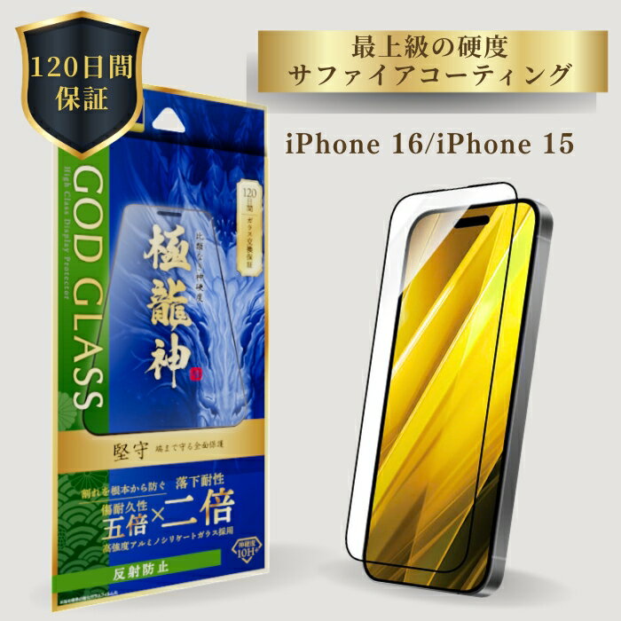 iPhone16 iPhone15 ガラスフィルム 反射防止 全面保護 フルカバー ドラゴントレイル 旭硝子 AGCガラス 120日間保証 貼り付けキット 簡単貼り付け 干渉しない 精密設計 さらさら GOD GLASS 極龍神 堅守 サファイア