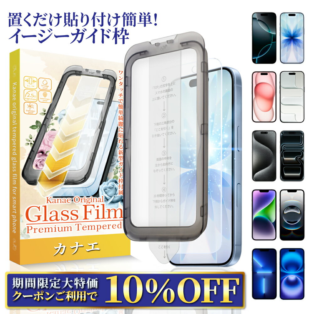 【 新商品 】 ●失敗しない!貼り付け簡単ガイド枠一体型ガラスフィルム! フィルムって貼るのが難しい…という悩みをよくお聞きすることがございます。 そんな悩みも叶kanaeは解決します。誰でもカンタン・キレイに貼れるよう「ガイド枠一体型ガラスフィルム」が登場! スマホ端末にセットしてシートを矢印の方向に引っ張るだけ!シンプルイズベスト! ●叶kanaeがお客様のスマホ液晶画面を守ります。 携帯ショップや家電量販店で販売される高級品と同等の強度と特殊コーティングによる滑らかな指すべりの高品質ガラスフィルムを低価格で提供します。 ●ブルーライトをカットしてお客様の目を守ります。 長時間のスマホで目が痛い。寝る前の暗闇でついついスマホゲームのやりすぎ。ブルーライトを浴び続けると「目の痛み」「肩こり」「頭痛」など身体全体に悪影響を与える場合があります。 今日からできる対策をブルーライトカット率32%のフィルムが貴方の目を守ります。 ●表面硬度9Hでカッターナイフでも傷付かない 表面硝子は日本製AGC旭硝子を使用し、液晶とフィルムを貼り付ける密着面には日本のNippa社製の密着材を採用しており素材に拘った一品になっています。カッターやナイフでも傷つけられない硬度9Hがあなたの液晶画面を守ります。 ●滑らかな指触りでスムースタッチ 硝子表面はプラズマ溶射処理による、フッ素コーティングを施しており、滑らかな指すべりを実感して頂けます。また、油脂類のバリヤ(はいあがり防止)・飛散防止と付着防止・防汚などのメリットを発揮してくれます。 ※ご購入時に機種を選択してください。 ■対応機種 iPhone17 iPhone Air iPhone17 Pro iPhone17 ProMax iPhone16e iPhone16 iPhone16 Pro iPhone15 iPhone14 iPhone13 iPhone13 Pro iPhone12 iPhone12 Pro iPhoneSE 第3世代 (2022年発売) iPhoneSE 第2世代 (2020年発売) iPhone8 iPhone7 ■同梱品 ガイド枠一体型ガラスフィルム(全面吸着タイプ)×1枚 / 貼る前に端末掃除クリーナー×2セット ※全面吸着は フィルム全体が接着するタイプです。 ■サイズ一覧(縦/横) iPhone 17:縦145.2mm / 横67.0mm iPhone Air:縦151.5mm / 横70.0mm iPhone 17Pro:縦145.2mm / 横67.0mm iPhone 17ProMax:縦158.7mm / 横73.3mm iPhone 16e:縦143.6mm / 横68.4mm iPhone 16:縦141.7mm / 横65.7mm iPhone 16 Pro:縦145.2mm / 横67.0mm iPhone 15:縦141.7mm / 横65.7mm iPhone 14:縦143.6mm / 横68.4mm iPhone 13:縦143.6mm / 横68.4mm iPhone 13 Pro:縦143.6mm / 横68.4mm iPhone 12:縦142.1mm / 横66.9mm iPhone 12 Pro:縦142.1mm / 横66.9mm iPhone SE 第3世代:縦128.9mm / 横58.1mm iPhone SE 第2世代:縦128.9mm / 横58.1mm iPhone8:縦128.9mm / 横58.1mm iPhone7:縦128.9mm / 横58.1mm 【注意事項】 ※iPhone17 / iPhone16 Proは共用です。 ※iPhoneSE 第1世代(2016)は iPhoneSE 第3世代(2022)/第2世代(2020年)と別機種です。 今一度ご確認の上ご購入いただきますようお願いいたします。 ※iPhoneSE 第1世代(2016年発売)は対応しておりません お客様にお届け前に弊社国内の日本人検査スタッフが1枚づつ品質チェックしておりますが、万が一、ご使用前に不良品がお手元に届いた場合は返品交換等の対応を取らせて頂きますので、ご安心してお買い求め下さい。 お使いのモニターの発色具合によって、実際のものと色が異なる場合がございます。 ■関連キーワード iphone ガラスフィルム iphone 画面保護フィルム ガラス iPhone ガラスフィルム 保護フィルム iphone17 iphone air ガラスフィルム iphone17promax 保護フィルム iphone16pro iphone16 iphone15 iphone14 iphone13 iphone12 pro iphone se3 se2 ブルーライトカットガラス ガイド枠付き ガイド枠 一体型 ガラスフィルム ガイド枠付き 一体型ガラスフィルム ガイド枠一体型ガラスフィルム ■商品名 【ブルーライトカット】 iPhone17 ガラスフィルム iPhone16e 保護フィルム iPhone16 フィルム iPhone17pro 16pro 17promax air iPhone15 14 13pro 13 12pro 12 SE 第3世代 15pro アイフォン 液晶保護フィルム 画面フィルム 画面保護フィルム 叶kanae カナエ 強化ガラス 強化ガラス 液晶保護フィルム 強化ガラスフィルム フィルム 送料無料 指紋軽減 飛散防止 メーカー希望小売価格はメーカー商品タグに基づいて掲載しています