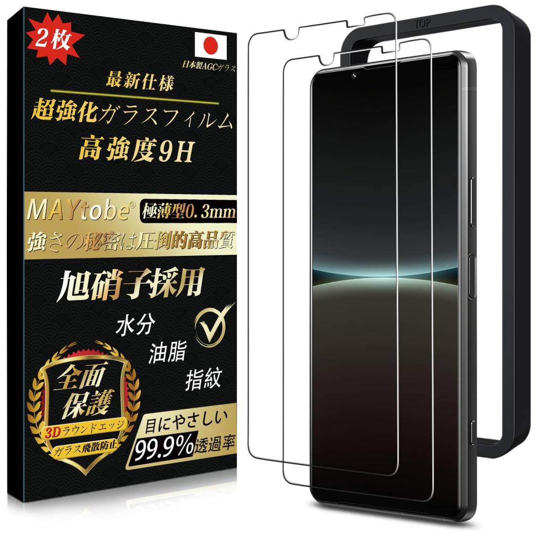 【2024二世代】ガイド枠付き MAYtobe Xperia 5 iv ガラス保護フィルム 日本製旭硝子(2枚)全面保護 硬度9H 超耐久 SO-54C ガラスフィルム SOG09 保護フィルム 極薄 99%高透過率 強化ガラス 液晶 耐衝撃 気泡なし 指紋防止 飛散防止 撥水撥油 自動吸着 貼り付け簡単 エクスペ