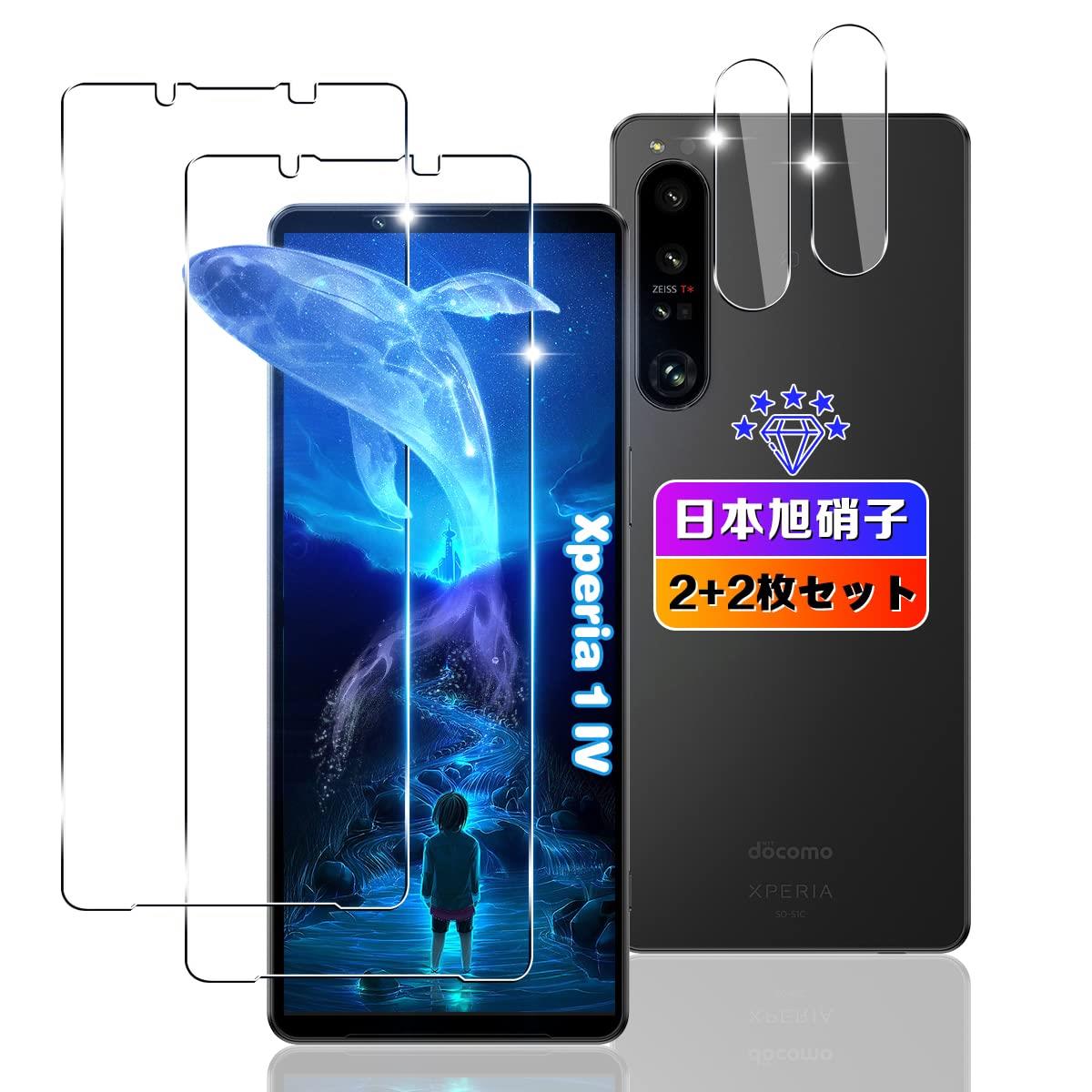 【wnunbg 2+2枚セット】 対応 Xperia 1 IV ガラスフィルム 2枚+ レンズフィルム 2枚【日本旭硝子素材採用 指紋認証対応 】 対応 エクスペリア 1 IV SO-51C / SOG06 フィルム 液晶 強化ガラス 保護フィルム 硬度9H 飛散防止 超薄型0.26 耐衝撃 引っかきキズに強い 指紋防止