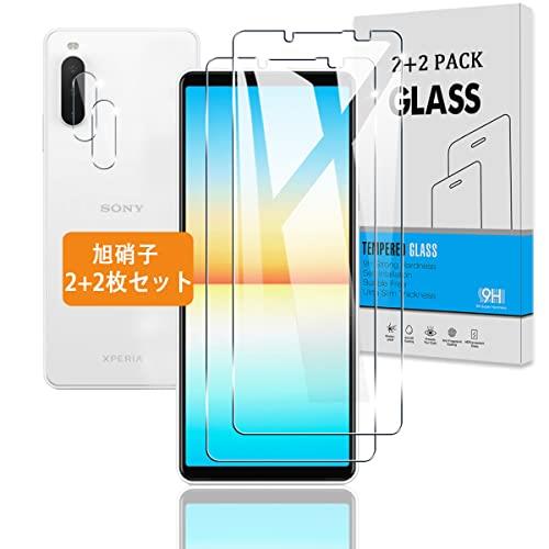 【2+2枚セット】 対応 Xperia 10 IV ガラスフィルム + エクスペリア10 IV カメラフィルム 【日本旭硝子 硬度9H】 対応 Xperia 10 IV SO-52C フィルム 強化ガラス 液晶 保護フィルム 3D Touch対応 、高透過率 、気泡ゼロ 、厚さ0.26mm超薄型 、飛散防止 、高感度 、衝撃吸収