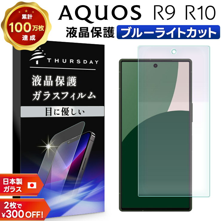 【4日20時〜50%OFFクーポン対象】 AQUOS R10 フィルム aquos r10 保護フィルム aquos r9 保護フィルム AQUOS R9 フィルム ブルーライトガラス 耐衝撃 指紋防止 液晶保護フィルム 強化ガラス 硬度9H スマホフィルム