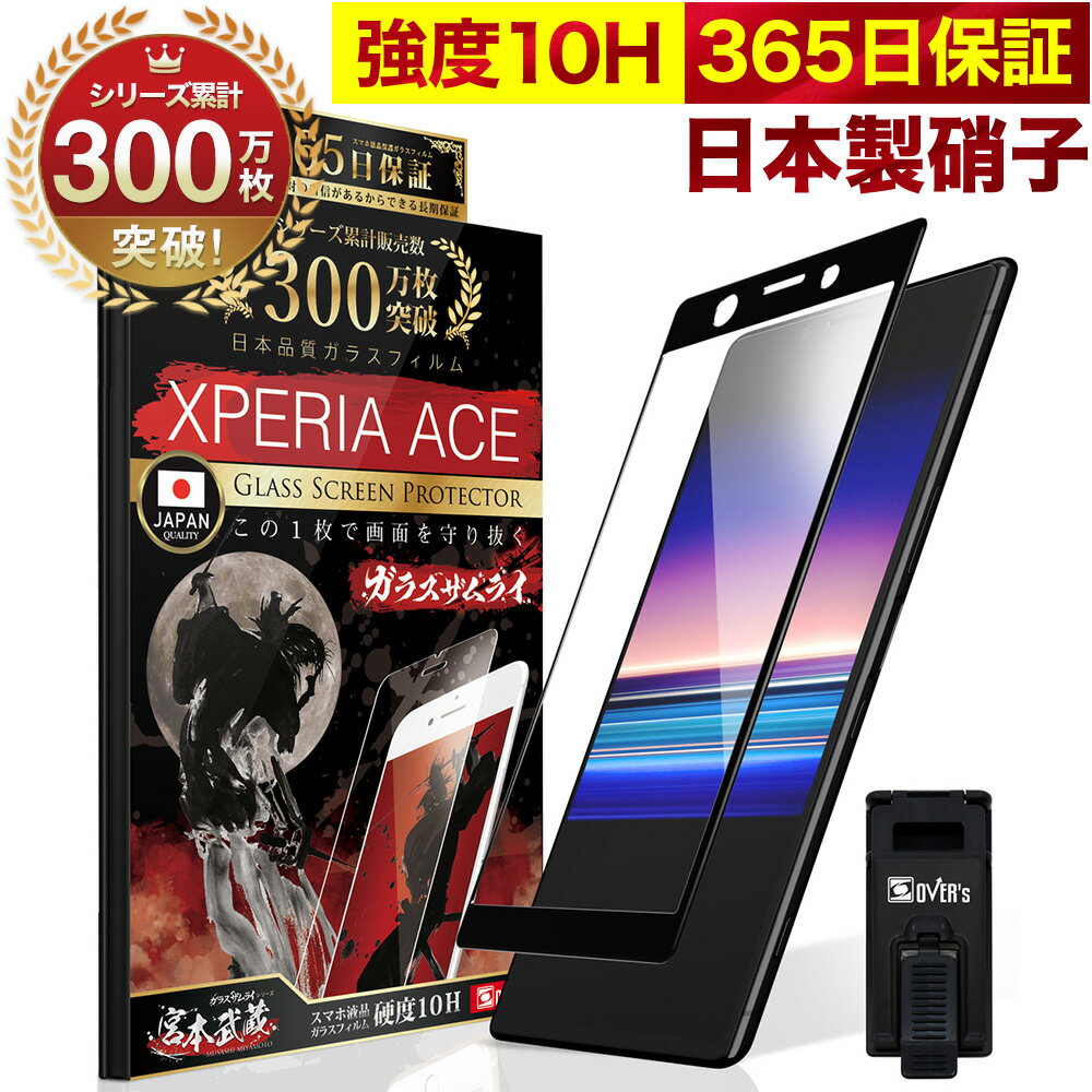 Xperia Ace SO-02L SO02L 全面保護 ガラスフィルム 保護フィルム フィルム 全面吸着タイプ 10H ガラスザムライ エクスペリアエース 全面 保護 液晶保護フィルム OVER`s オーバーズ 黒縁 TP01