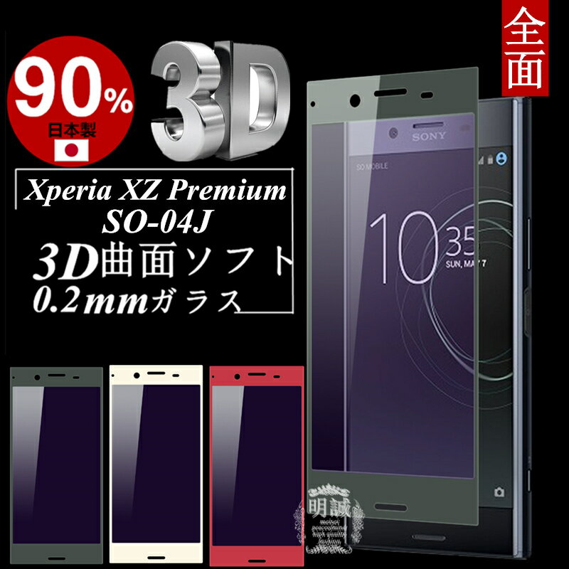 Xperia XZ Premium SO-04J 3D全面保護 ブルーライトカット 強化ガラス保護フィルム Xperia XZ Premium SO-04J 極薄0.2mm 3D曲面 ガラス保護フィルム Xperia XZ Premium ソフトフレーム SO-04J ブルーライトカット Xperia XZ Premium SO-04J 保護ガラスフィルム 送料無料