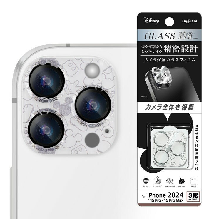 iPhone 16Pro 16ProMax 15Pro 15ProMax カメラ フィルム ガラスフィルム ディズニー ミッキーマウス 保護 レンズ 10H 汚れ防止 背面カメラ 一体型 キャラクター グッズ iPhone 2023 2024 3眼 アイホン アイフォン IN-DP4749FG-CAMK45