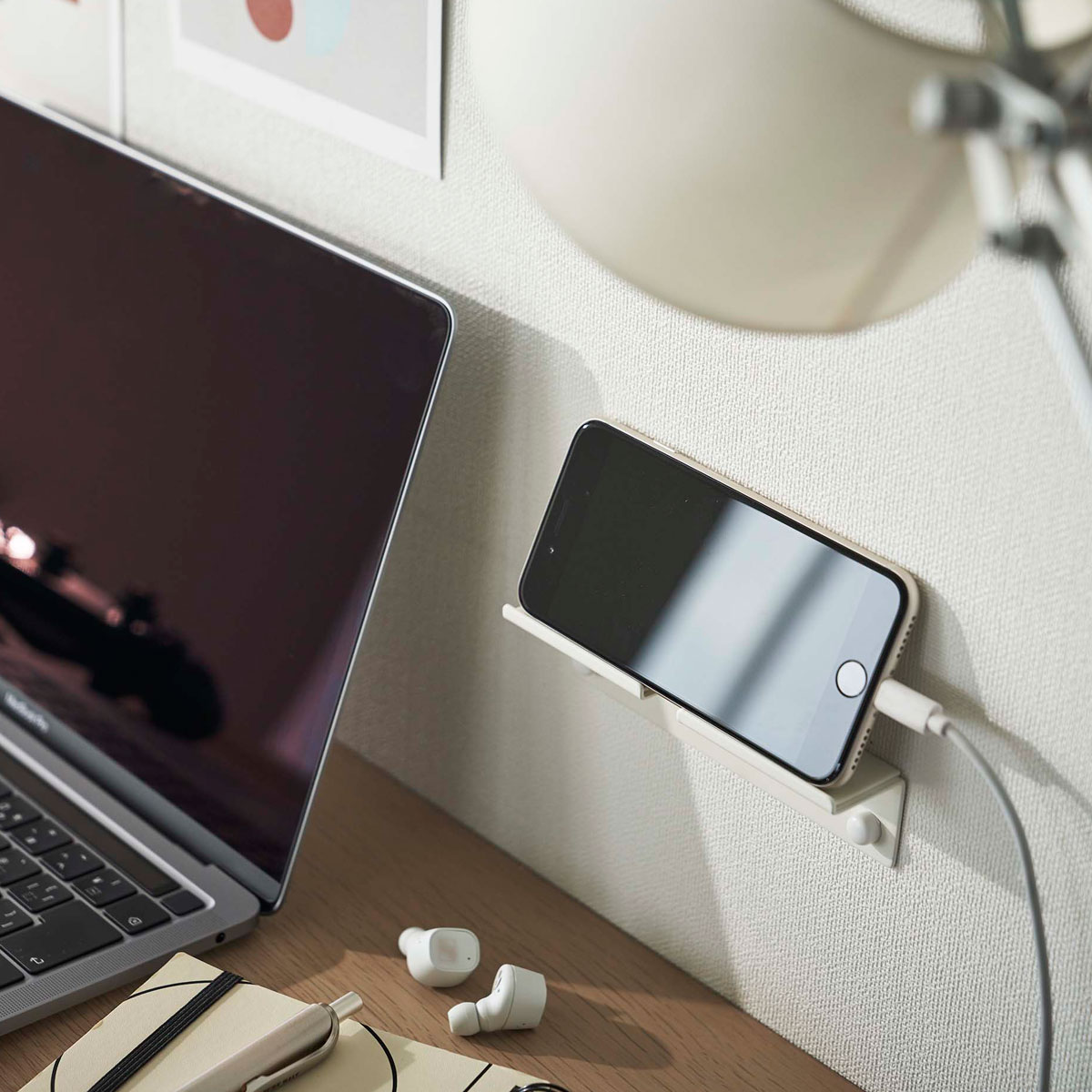 [ smart ウォール スマートフォン&ヘッドホンホルダー スマート ] 山崎実業 収納 タブレットスタンド スマホスタンド ヘッドホン掛け ベッドサイド テレワーク 省スペース 壁面収納 引っ掛け リビング スマートシリーズ 5893 5894