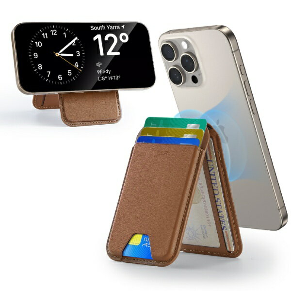 イーエスアール|ESR マグネット式スマホスタンド MagSafe対応 カードケース スマホスタンド RFIDブロッキング機能付 ブラウン 3C13210300265 - Brown