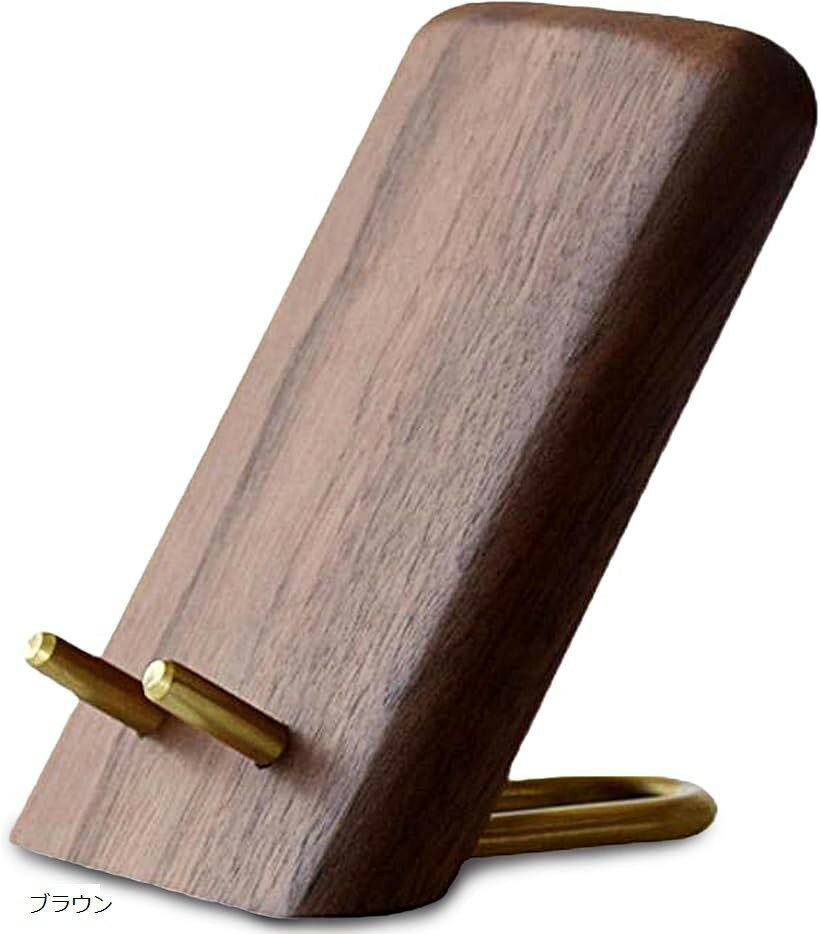 木製 スマホスタンド 卓上 ウォールナット インテリア おしゃれ 縦置き 横置き 充電対応 (ブラウン)