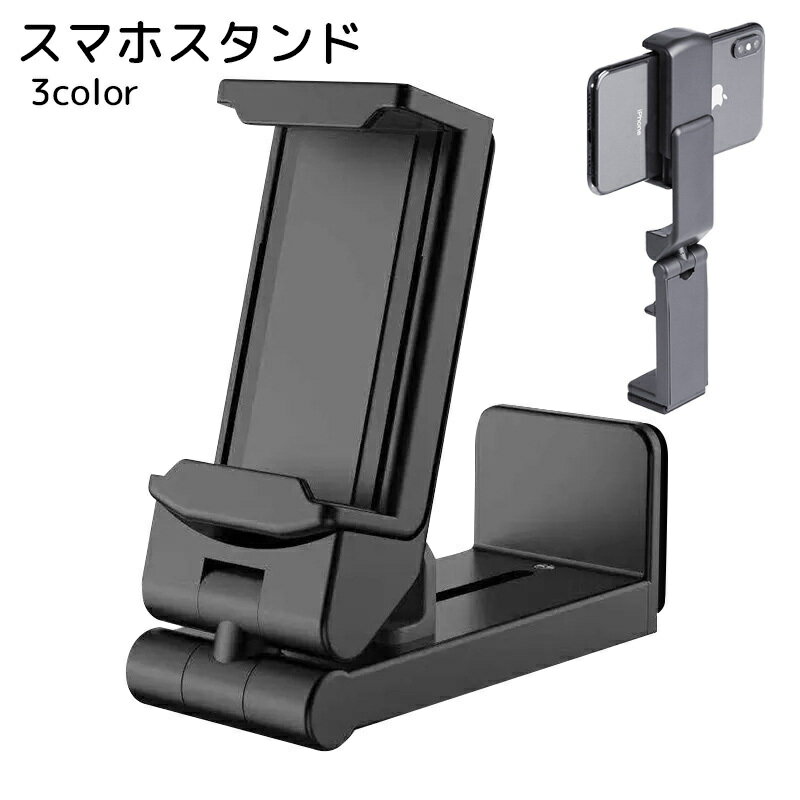 送料無料 スマホスタンド スマホホルダー スマホ用アクセサリー クリップタイプ ブラック 360度 回転 折りたたみ コンパクト
