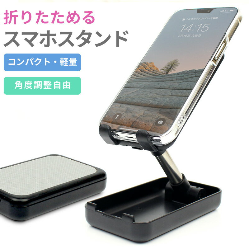 折りたたみスマホスタンド 携帯スタンド コンパクト 角度調整 自由 携帯用 持ち運び 軽量 スマートフォン 折り畳み iPhone android 各種対応 通話 自撮り 動画鑑賞 リモート テレワーク zoom メール便