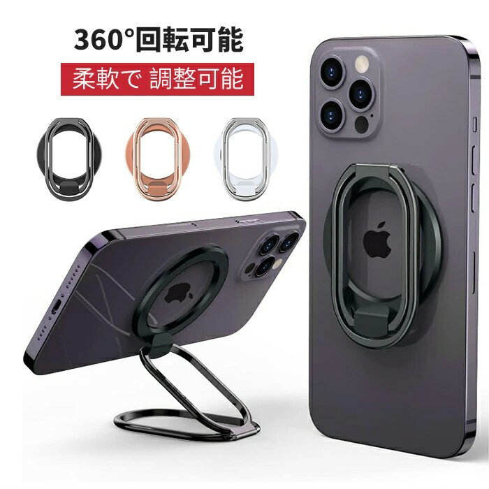 スマホリング マグネット式 iPhone12 iPhone13 iPhone14 iPhone15 iPhone16シリーズ 超薄型 強力磁石 N52 アルミニウム合金 スマホスタンド リングホルダー 背面貼り付け