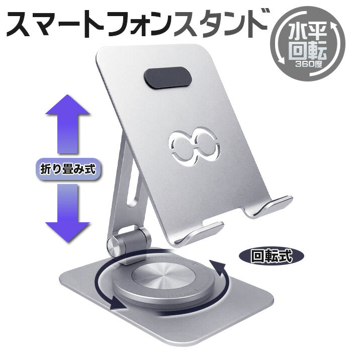 【50%OFF】【2024年最新型】【PS-07】スマートフォンスタンド 水平回転式360° 折りたたみ式 シルバー スマートフォンホルダー 高さ 角度調整可能 滑り止め 卓上ホルダー モバイルスタンド スマホスタンド 携帯電話スタンド iphone