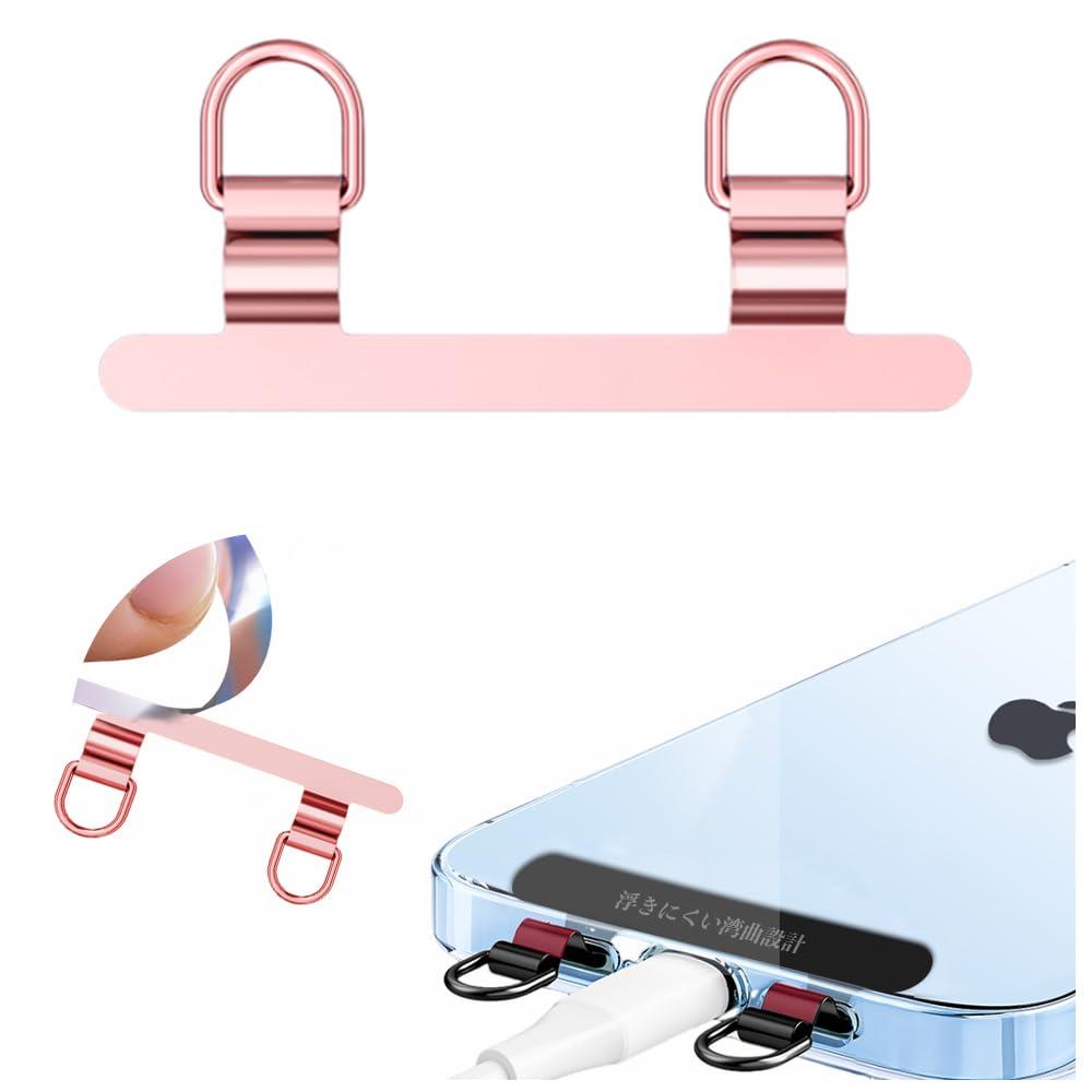 カラー:ピンク◆商品名:スマホ 2口タイプ ストラップホルダー 0.4mmの超薄型 ステンレス製 浮きにくい湾曲設計 スクラッチ防止フィルム付き スマに傷つけなし スマホストラップホルダー 携帯ストラップホルダー タグパッチ 10kgまでの荷重量 スマホケースに挟む 充電影響なし 落下紛失防止 全機種対【2口タイプ、充電に完全干渉ない】: 従来の製品は1つの掛けリングを搭載して、充電口に通して装着するから、充電に干渉しやすいです。本製品は2つの掛けリングをデザインされて、ケースのスピーカー口に通して装着し、充電ケーブルの接続を完全に邪魔しなくて、シールを挟んだままでも充電やイヤホンのケーブルを挿すことができます。【0.4mmの超薄型&曲がれ設計で浮きにくい】:このスマホストラップホルダーは金属リングと本体の間での連結金属部分は折り曲がれて段差になり、ケースを装着したままに全然浮きにくい、この点を革新されて、従来の製品を装着した後に、ケースがやや浮きの問題点を解決し、便利さをアップさせます。更に0.4mmだけの薄さ、本ストラップホルダーを挟んだままに、何も装着しないような体験を実現されます。【保護フィルムを加工、スクラッチ防止】:金属製でスマホを傷付けないように、スマホに接触する面はスクラッチ防止フィルム加工が施してあり、傷が付きにくい構造になっています(本社の専門技術)。他の製品は自分で傷防止フィルムを貼り付けて、非常に手間を取り、本製品はこの手間なし、直接的に使用できます。【ステンレス製、抜群な丈夫さ】:従来の製品はPVC/布/ビニー ル製を採用して、破損、千切れ、変形、劣化などの問題が発生しやすい。本スマホホルダーは高品質なステンレス素材で作り、耐久性や丈夫さが優れて、10までの荷重量、抜群な安定性をを備えて、長い時間使用しても錆びにくく、破損や劣化問題がなし。また表面にメッキ仕上げが加工されて、円滑で高級感が溢れています。【手間なし、装着簡単】:本のストラップホルダーは2口タイプので、スマホケースのスピーカー口を通して装着します。装着する時に、ホルダーの裏側と表侧の方向を注意してください。カラー側をケースに向かって、フィルムコーティング側をスマホに接触させて、どんなにスマホを動させて傷つけません。※注意事項:ご購入前に、ごスマホケースのタイプ(スピーカー穴を開く必要がある)を確認してください。0