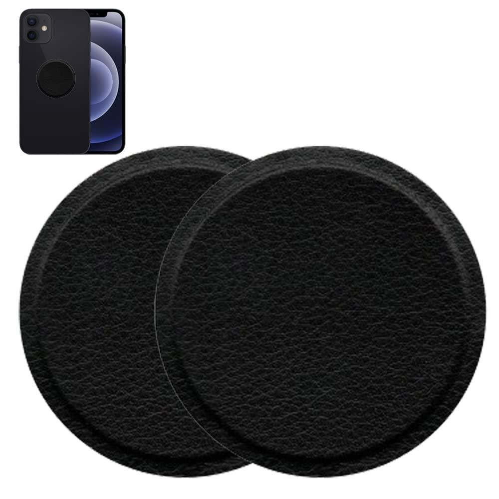 【AAGWW】スマホホルダー マグネット 車載ホルダー メタルプレート マグネットホルダー スマホ ホルダー マグネットプレート 鉄板シート まぐねっと 板 テープ付き 金属片(レザーデザイン、丸い、色:ブラック、合計:2pcs)