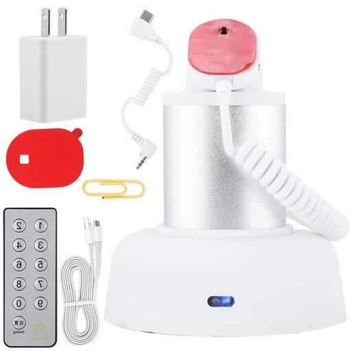 [高品質ディスプレイ]高品質のスマートフォン展示スタンドは、店舗や電話店の装飾に最適で、ゴージャスな雰囲気を作り出します。耐久性のある素材を使用し、長期間美しい状態を維持します。シーン1:店頭での商品紹介。シーン2:家庭内でのデコレーション。 [盗難防止と充電機能]スマホ盗難防止展示台は、アラームと充電機能を組み合わせ、安全性と利便性を提供します。お客様が安心してショッピングを楽しめます。シーン1:レジ近くでの利用。シーン2:事務所での個人用デバイス保護。 [強力なアラームとリモコン操作]100〜120dbのアラーム音量により、緊急時には迅速に対応できます。リモコンによる簡単操作も可能で、誤作動を防ぎます。シーン1:展示会場での使用。シーン2:オフィス内のセキュリティ対策。 [長時間スタンバイバッテリー]内蔵480mAhバッテリーは、3〜6か月間のスタンバイをサポートし、継続的なセキュリティを提供します。さらに5V-1Aで携帯電話を充電可能です。シーン1:複数日間のイベント。シーン2:家庭での長期使用。