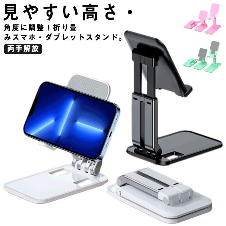 【マラソンP10倍】スマホ タブレット スタンド おりたたみ式 高さ角度調節可能 360°回転 ブラック ホワイト iphone16 iphone15 iphone14 android 折り畳み 折畳み コンパクト すべり止め シリコン 多機種対応