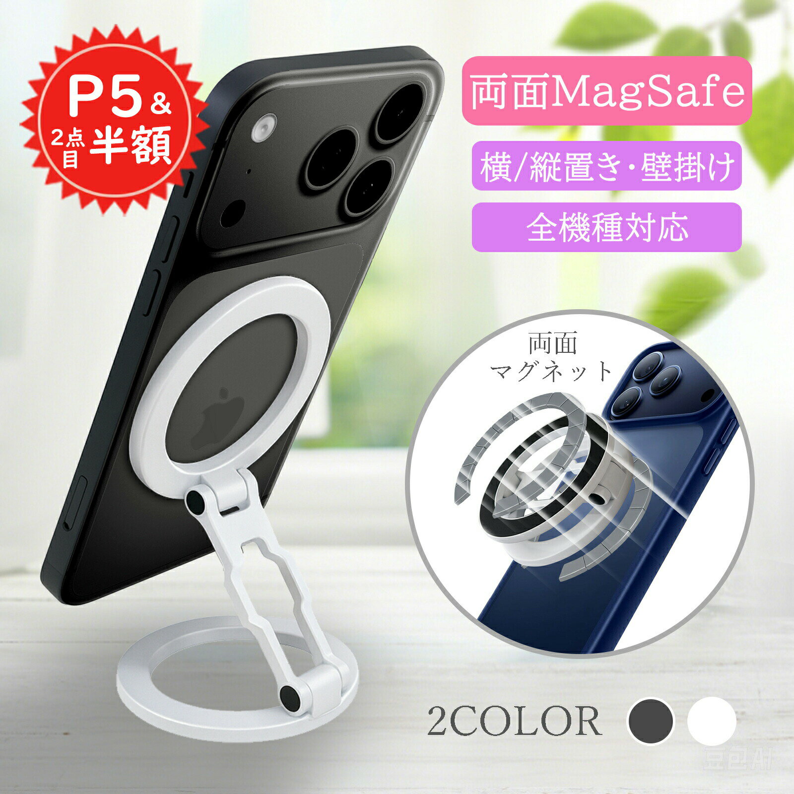 【マラソン限定P5倍&2点目半額】 MagSafe スタンド 両面マグネット スマホリング 車載ホルダー 角度調整 折りたたみ式 iPhone 17 16 15 14 13 12 Android iPad mini 対応 デスク キッチン 浴室 ハンズフリー 超強力磁石 マルチスタンド #1