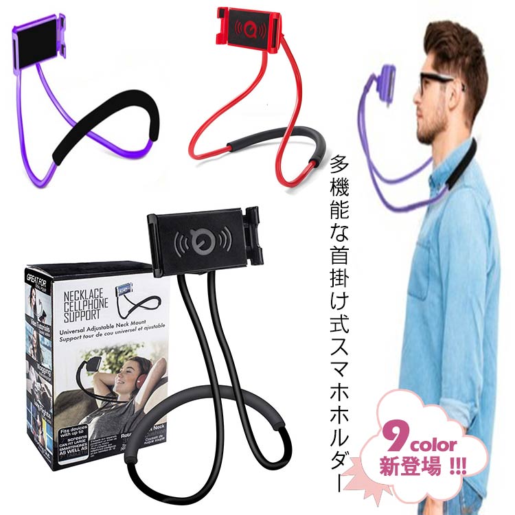 自撮り棒 iphone スマホ 携帯スタンド 首掛け 首かけ ホルダー 寝ながら 卓上ホルダー 車載ホルダー 多機能 フレキシブルアーム 自由に調整可能。首掛け式スマホスタンド セルカ棒 タブレット スマートフォン スタンド