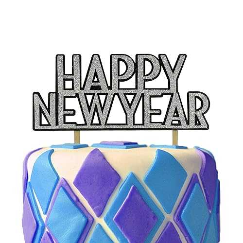 新年ケーキトッパーデコレーションMDFレーザーカットカラーシルバーとブラックグリッター泡状 Picwrap New Years Cake Topper Decoration MDF Laser Cut Color Silver and Black Glitter Foamy