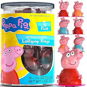 Primary Colors Peppa Pig Lolly Pops Candy Ring 15Pk - Peppa Pig Birthday Party Supplies For Party Candy For Kids Birthday - Peppa Pig Birthday Decorations For Peppa Pig Party Favors & Peppa Pig Cupcake Toppers - Pep