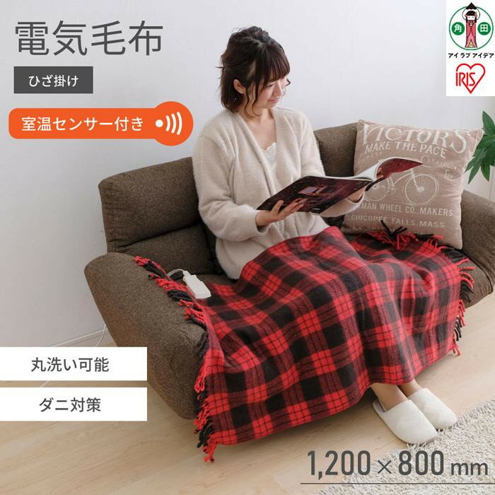 【ふるさと納税】電気毛布 ひざ掛け 120×80cm EBK-1208-ZR レッド アイリスオーヤマ|室温センサー 洗える あったか 省エネ 無段階調節 | 最強翌日配送