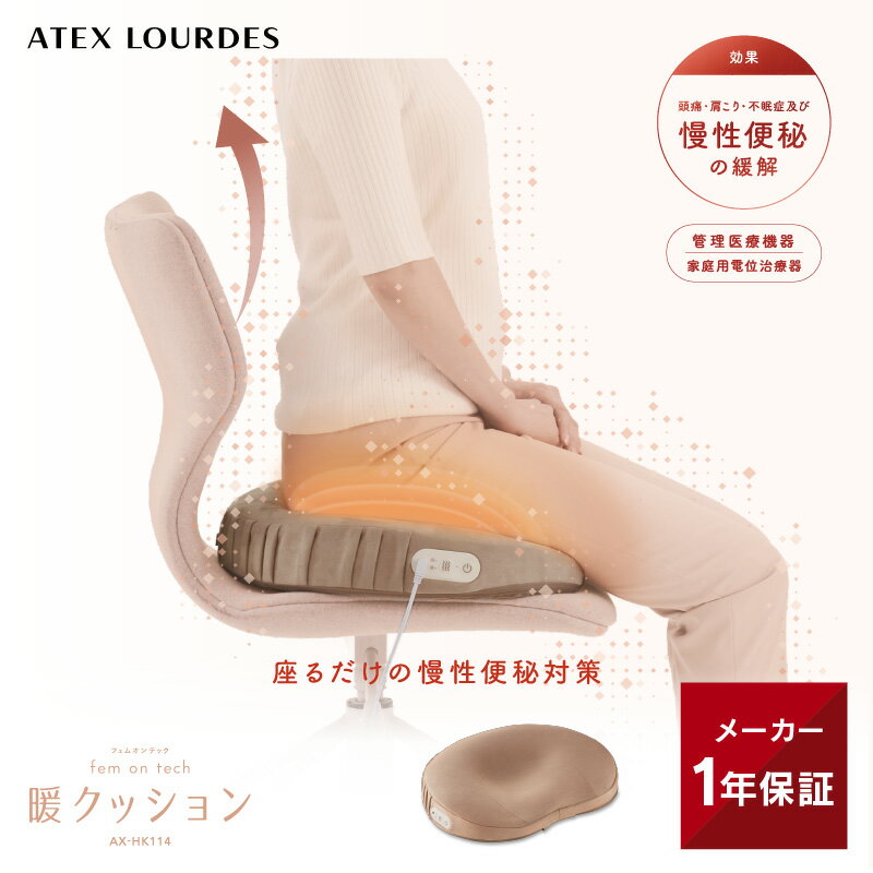 【ポイント10倍】公式 フェムオンテック 暖クッション AX-HK114 電位治療器 温熱 慢性便秘 頭痛 肩こり 不眠症 姿勢 背筋 矯正 座布団 イス アテックス ルルド ATEX ギフト プレゼント 送料無料