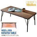 ヴィンテージ調 ウッド&アイアン こたつ テーブル 100×50cm 古材風 木製 アイアン こたつ テーブル フラットヒーター コンパクト スリム 長方形 100×50 オールシーズン コタツ ローテーブル ヴィンテージ インダストリアル ブルックリン カフェ おしゃれ お洒落