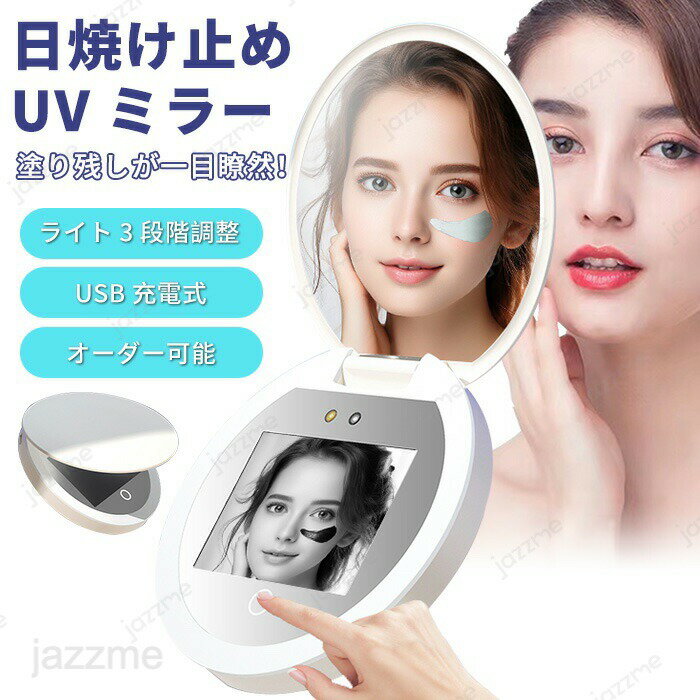 メーカー希望小売価格はメーカーカタログに基づいて掲載しています商品情報検索キーワード:日焼け止めUVミラー 日焼け止めテスト用ミラー LED付き 鏡 UVチェックミラー 紫外線チェッカー 化粧ミラー 日焼け止めテスト 充電式 3色モード切替え コンパクトミラー 持ち運び可能 角度調整可能 明るさは自由に調整できる スマートタッチ 軽量 97mmスペック商品名:日焼け止めUVミラー カラー:アイボリー光:三段階調整輝度:22-24LMサイズ:約97x97x18mm重さ:約120gセット内容:ミラー+Type-C充電ケーブル+日本語取扱説明書充電方法:Type-C充電(5V2A/5V2A以上の電源をご使用してください。)おすすめポイント【日焼け止めを塗る効果を明らかにします?】日焼け止めが塗布されている部分がUVディスプレイに黒く映ると、日焼け止めの効果がよいです黒が徐々に薄くなってくると、日焼け止め効果は徐々に落ちている。この時は塗り直すことを勧めです。肌が直接見えてくると、日焼け止めは無効になります。【日焼け止めをきれいか落とすどうかテストする】日焼け止めを塗る効果をテストするだけではなく、クレンジング時日焼け止めをきれいか落とすどうかチェックすることはできます。【3段階LEDライト照明の調整はできる&2Wayミラー】UVディスプレイの周りにLEDライトが搭載され、明るさが3段階に調節ができ、暗いところにメイクした時に化粧ミラーとして使える便利さ。いつでもきれいなメイクを保ち、とても便利です。【1000mAh電池容量&Type-C充電式】1000mAh電池を搭載し、長時間使用することはできます。Type-C充電式で、パソコンや充電器、モバイルバッテリーで多様な充電方法に対応!お出かけ時も安心。【軽量・コンパクトで持ち運び便利】わずか120gの軽量設計かつ9.7x9.7x1.8cmのコンパクトサイズでいつでもどこでも手軽に持ち運ぶことができます。購入前のご注意※多少の染めムラや、素材に含まれるインクルージョンがある場合があります。不良品ではありません。※商品写真はできる限り実物と近づけるようにしておりますが、お使いのモニター設定、お部屋の照明等により実際の商品と色味が異なる場合がございます。※採寸はあくまで目安としてのもので、表記に多少の誤差(前後2?3cm)が生じる場合があります。※生産時期により、色・サイズ・デザインが多少が異なる場合がございますので、複数の商品をご注文頂いた場合も多少に異なる場合があります。※当店の商品は全て日本人スタッフにより検品してから発送したものです。海外からの輸入商品のため、縫製は日本製のものと比べて、 縫製の見劣、糸のほつれ、製造過程における小さなキズ、シミなどがある場合がございますが、不良品ではございません。予めご了承くださいませ。※各商品は各商品ページ選択肢のところに規定ある納期より発送いたします。当店では複数店舗で在庫を共有しており、システムによる在庫調整を行っております。ご注文が集中した場合、タイミングにより在庫にずれが生じ欠品となる可能性がございます。 その際、当店での注文確認後にご案内させていただく場合がございますこと、予めご了承ください。商品の保証初期不良の場合、未使用の商品のみ到着日から7日以内にご連絡いただければご返金、交換対応させていただきます。ご使用後の返金・交換は保証外となっております。日焼け止めUVミラー 日焼け止めテスト用ミラー LED付き 鏡 UVチェックミラー 紫外線チェッカー 化粧ミラー 日焼け止めテスト 充電式 3色モード切替え コンパクトミラー 持ち運び可能 角度調整可能 明るさは自由に調整できる スマートタッチ 軽量 97mm日焼け止めUVミラー 日焼け止めテスト用ミラー LED付き 鏡 UVチェックミラー 紫外線チェッカー 化粧ミラー 日焼け止めテスト 充電式 3色モード切替え コンパクトミラー 持ち運び可能 角度調整可能 明るさは自由に調整できる スマートタッチ 軽量 97mm 日焼け止めを塗る効果を明らかにします?塗り残しが一目瞭然!