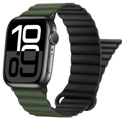 [HITZEE] Band コンパチブル Apple Watch バンド 49mm 46mm 45mm 44mm 42mm 41mm 40mm 38mm 両面ウェアラブルシリコン磁気バンド Apple Watch Ultra 2 Ultra シリーズ 10 9 8 7 SE 6 5 4 3 2 1 に対応(38mm/40mm/41mm/42mm,グリーンブラック)