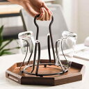 水切りラック グラススタンド アイアン製 おしゃれ 和風 カップホルダー コップ立て 卓上 吊り下げ収納 トレー付き 省スペース キッチン リビング 家庭用
