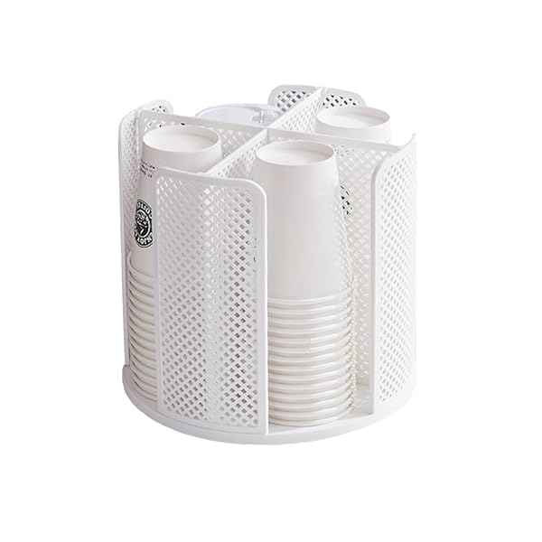 紙コップホルダー カップホルダー 360度回転 カップディスペンサー 紙コップ収納 カップスタンド 大容量 コーヒーカップ コンビニ、ビュッフェ、オフィスなど適用 (ホワイト)