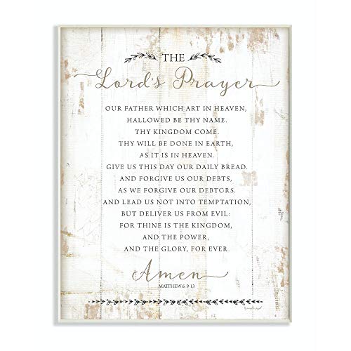 【中古】【未使用・未開封品】Stupell Industries 主の祈り 我らの父親 素朴なアンティーク調のホワイトウッド風壁飾り額、10 x 15、アーティストジェニファー・プーグによる