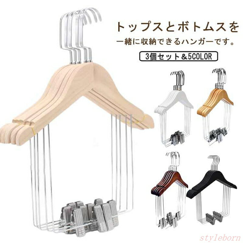 木製ハンガー セットアップ用 ハンガー 大人用 キッズ用 型崩れしない 3個セット 上下セット 洋服ハンガー 衣類ハンガー 収納ハンガー ジャケット