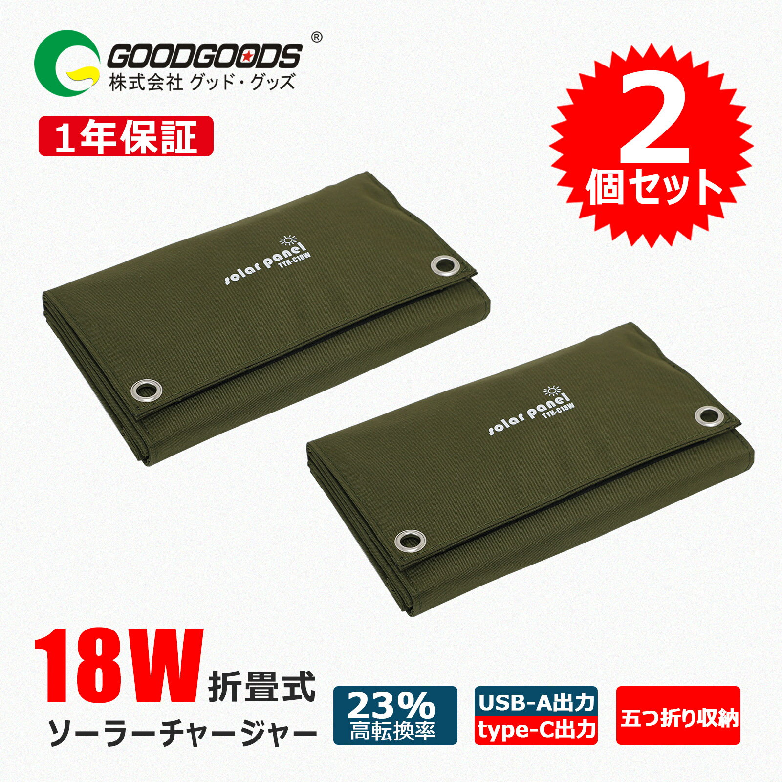 【2個セット】ソーラーパネル ソーラー充電器 18W USB type-C カラビナ付き 太陽光パネル アウトドア ソーラーパネル 太陽光発電 ソーラーチャージャー 折り畳み式 太陽光発電パネル ポータブル電源 屋外 台風 防災グッズ キャンプ 車中泊 アウトドア GOODGOODS TYH-C18W