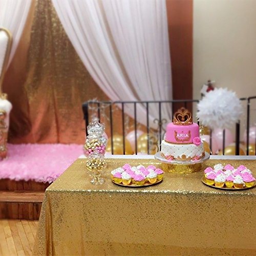 【中古】【未使用・未開封品】TRLYC スパンコールテーブルクロス 屋内/屋外 60インチ x 126インチ 長方形(長方形) ゴールド