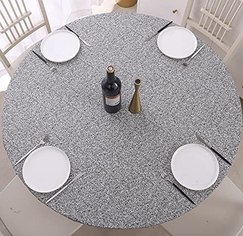 【中古】【未使用・未開封品】円形ビニールテーブルクロス 伸縮性のあるエッジ フランネル裏地 テーブルカバー グレー Lサイズ 直径45~56インチまでのテーブルに対応