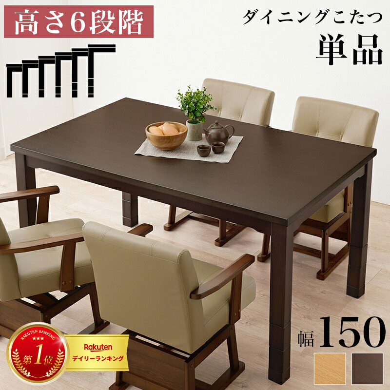 ダイニングコタツ こたつテーブル 幅150 ハイタイプ 高さ調節 木製 長方形 ダイニングテーブル ダイニングこたつ ナチュラル ダークブラウン シンプル 北欧 カントリー 和モダン 食卓テーブル 高さ調整