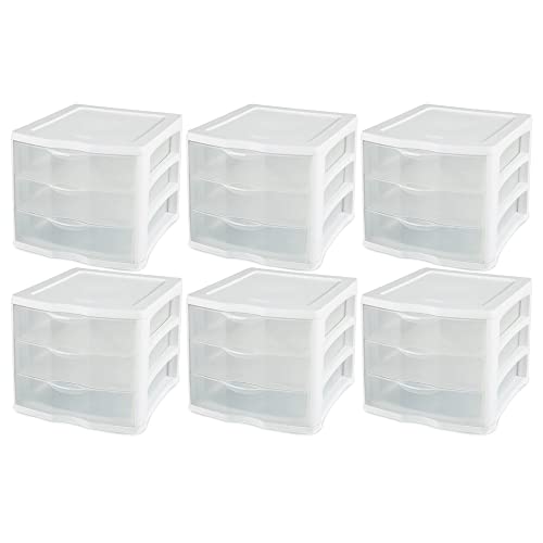 【中古】【未使用・未開封品】Sterilite ワイドポータブルカウンタートップ 引き出し3つ デスクトップストレージユニット (6個パック)