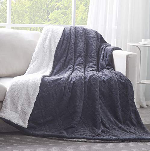 【中古】【未使用・未開封品】Tache フェイクファー スローブランケット ダークスレート ネイビーブルー ダイヤモンド トレリスパターン ソフト 暖かい フェイクファー スロー