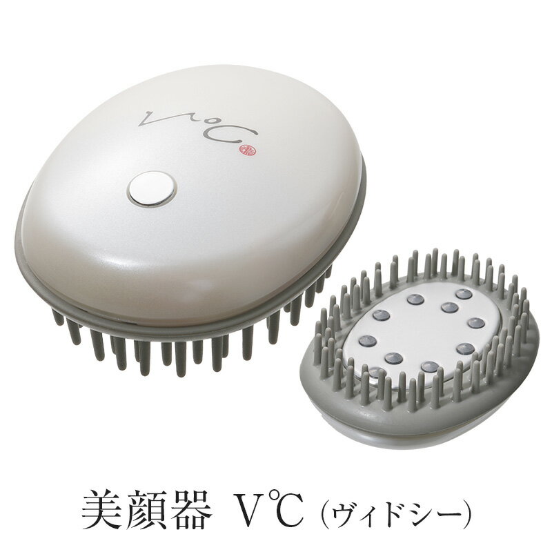 「美の魔術師」小林照子プロデュース!【美顔器「V℃(ヴィドシー」】 化粧品業界のカリスマ、小林照子(元コーセー役員)氏が行う温感トリートメントをもとにしたサロン並みのケアをご自宅でお楽しみいただける美顔器です! 作詞家 阿木燿子氏から「美の魔術師」と呼ばれる実力を持つ天才美容研究家が1年をかけて開発しました。 【美顔器「V℃(ヴィドシー」】のここがスゴイ!!4つのポイント ≪1≫お肌に理想的な42℃の温熱プレートで気持ちよくケア! *42℃…お肌の細胞を元気に戻してくれるヒートショックプロテイン(熱ショックタンパク質)がもっとも活性化する温度 ≪2≫ゲルマニウムチップを10個搭載! チップ全てがお顔にフィット。 心地よい微振動で、血流やリンパ液の循環をよくし、むくみの改善や老廃物の代謝を促します。 ≪3≫ご利用シーンや安全性に配慮した機能性! いつでもどこでも、簡単にケアできます!! ●10分のオートオフ機能付き ●軽量&コンパクトな手のひらサイズ ●便利な充電式 ≪4≫フェイスケアだけでなく、色々な部位のお手入れにお使いいただけます! V℃(ヴィドシー)は、フェイスラインや口周り・額などのケアはもちろん、疲れの出やすい目元や年齢の出やすい首周り〜デコルテ、頭皮のケアにも最適! 肌本来の美しくなる力を引き出します。 商品詳細 ■品質 素材:[本体]ABS樹脂・アルミニウム/[半導体チップ]酸化チタン・ゲルマニウム・シリコン/[クレイドル充電台]ABS樹脂/[ブラシ]シリコン 使用環境温度:10〜40℃ 電源:AC100〜240V 消費電力:4W 充電時間:約190分 連続使用時間:約80分 専用Liポリマー蓄電池:3,7V、1600mAh 電源アダプター長さ:約1m ※防水ではありません。 ※連続使用は約10分まで。(自動的にOFFに) 本体寸法:約W73×D95×H28.6mm クレイドル寸法:約W78×D120×H23mm 本体質量:約80g(電池含む) クレイドル質量:約50g 表面温度:42℃±2℃ ■セット内容 ・本体 ・取扱説明書 ・充電クレイドル ・頭皮用アタッチメント ・ACアダプター ・充電ケーブル(USB-アダプター) 関連商品 ■小林照子プロデュース商品はこちら スキンケアできる美容クリーム「NEWプリズムエッグ」 メイクしながらスキンケア「NEWパールライトベイス」