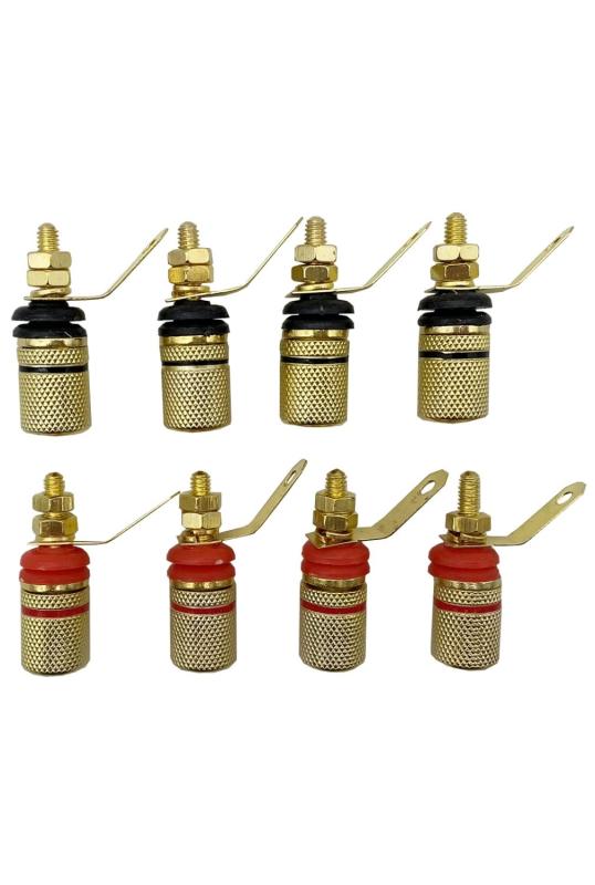 Viborg® 高性能スピーカーターミナル赤銅メッキ バナナプラグ対応4個セット(赤2/黒2個)材質 : 赤銅メッキイズ: 全長=50mm ネジ径=M8mm 最大部外径=φ18.7mmバナナプラグ直径: 4mmスピーカーには勿論、LUXMANなどのアンプのターミナルにも使用可能
