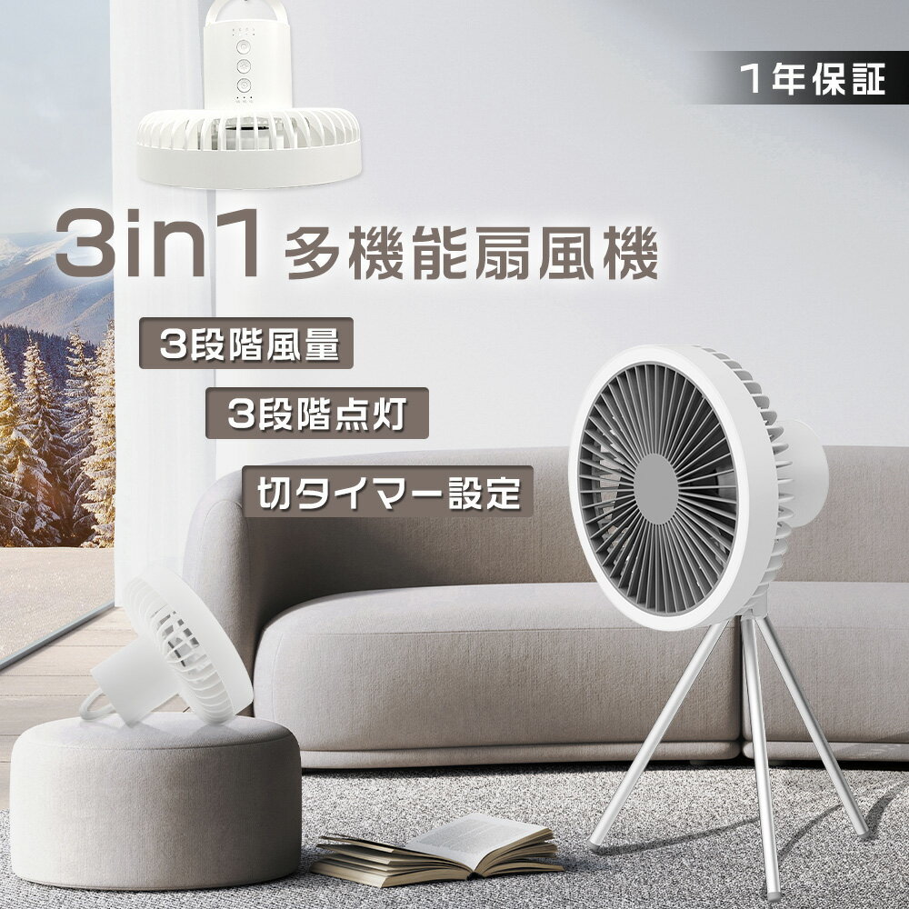 卓上扇風機 静音 小型 3段階風量調節 usb 充電式 コードレス 強力 DCモーター 静か 10000mAh LEDライト機能 タイマー設定 冷風機 軽量 ポータブル 置き型 吊り下げ 三脚スタンド付き 熱中症対策 オフィス デスク リビング キッチン キャンプ バーベキュー 卓上 ファン 白色