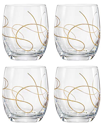【中古】【未使用・未開封品】Barski ガラスタンブラー - ゴールドストリングデザイン - 鉛フリークリスタル - ダブルオールドファッションタンブラー - グラス4個セット - ヨ