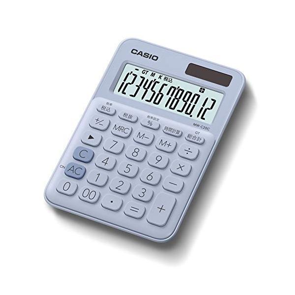 カシオ 電卓 12桁 (ペールブルー)CASIO カラフル電卓 ミニジャストタイプ MW-C20C-LB