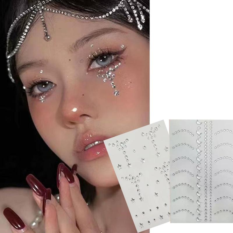 顔 シール 2 枚入 月の姫 目の装飾 真珠+ラインストーン シール フェースステッカー ハート リボン かわいい 自己粘着性 3D 光る キラキラ フェイスストーン 顔面デコ ネイルデコパーツ 携帯