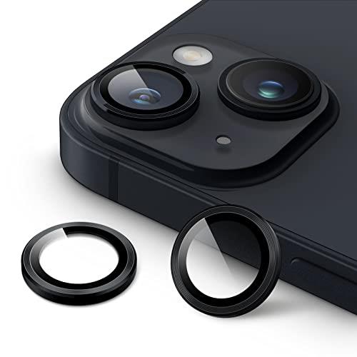 JEDi rect カメラレンズフィルム iPhone 14 6.1インチ/iPhone 14 Plus 6.7インチ用 9H強化ガラス 個別の金属リングカバー HDクリア 2枚セット (ミッドナイト)